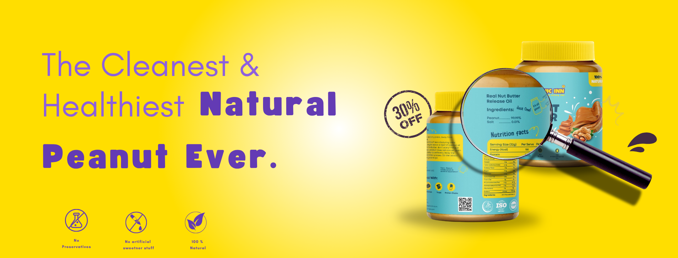 Organic Inn peanut butter contains just peanuts and salt (and sometimes not even the salt).