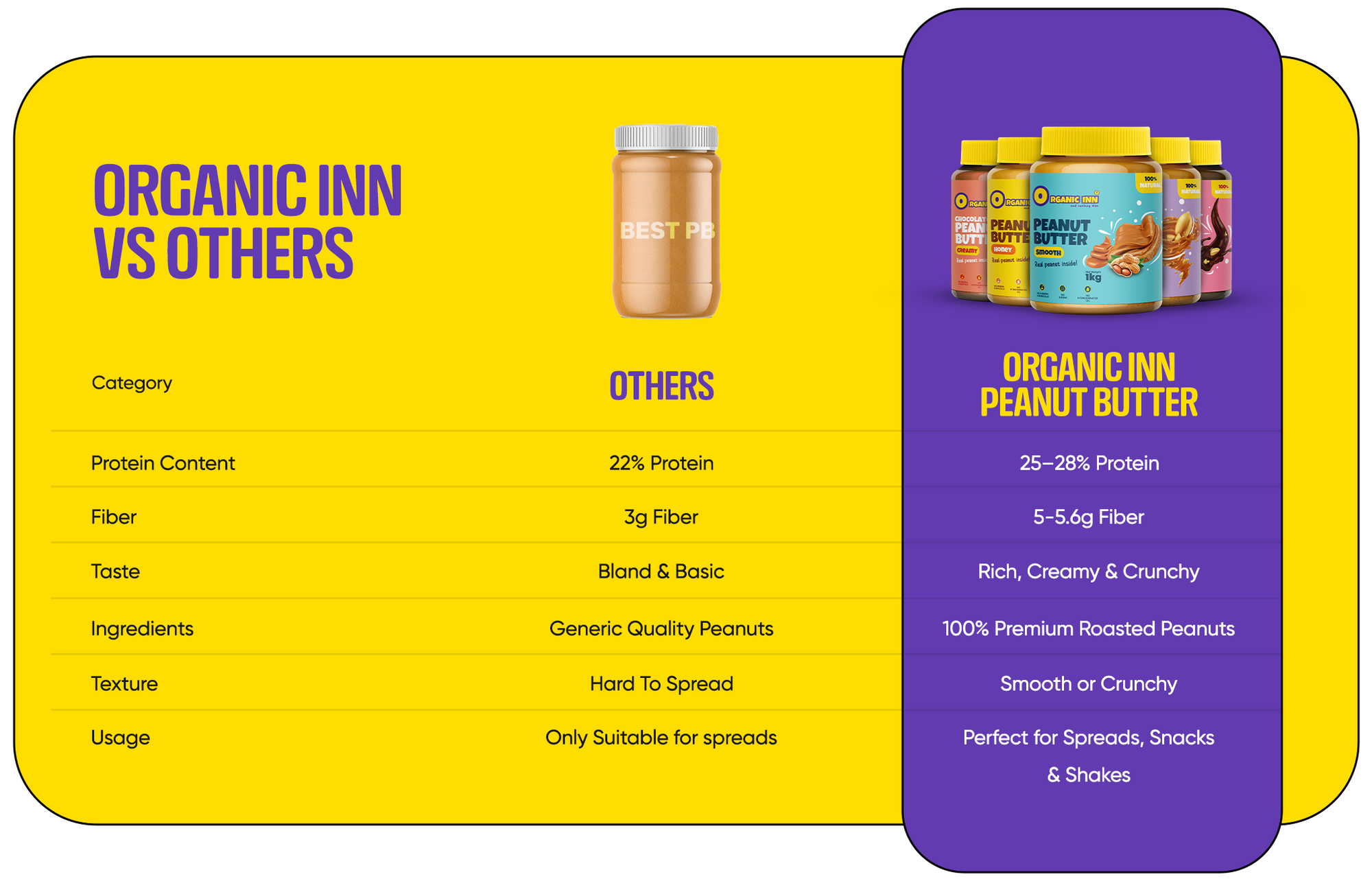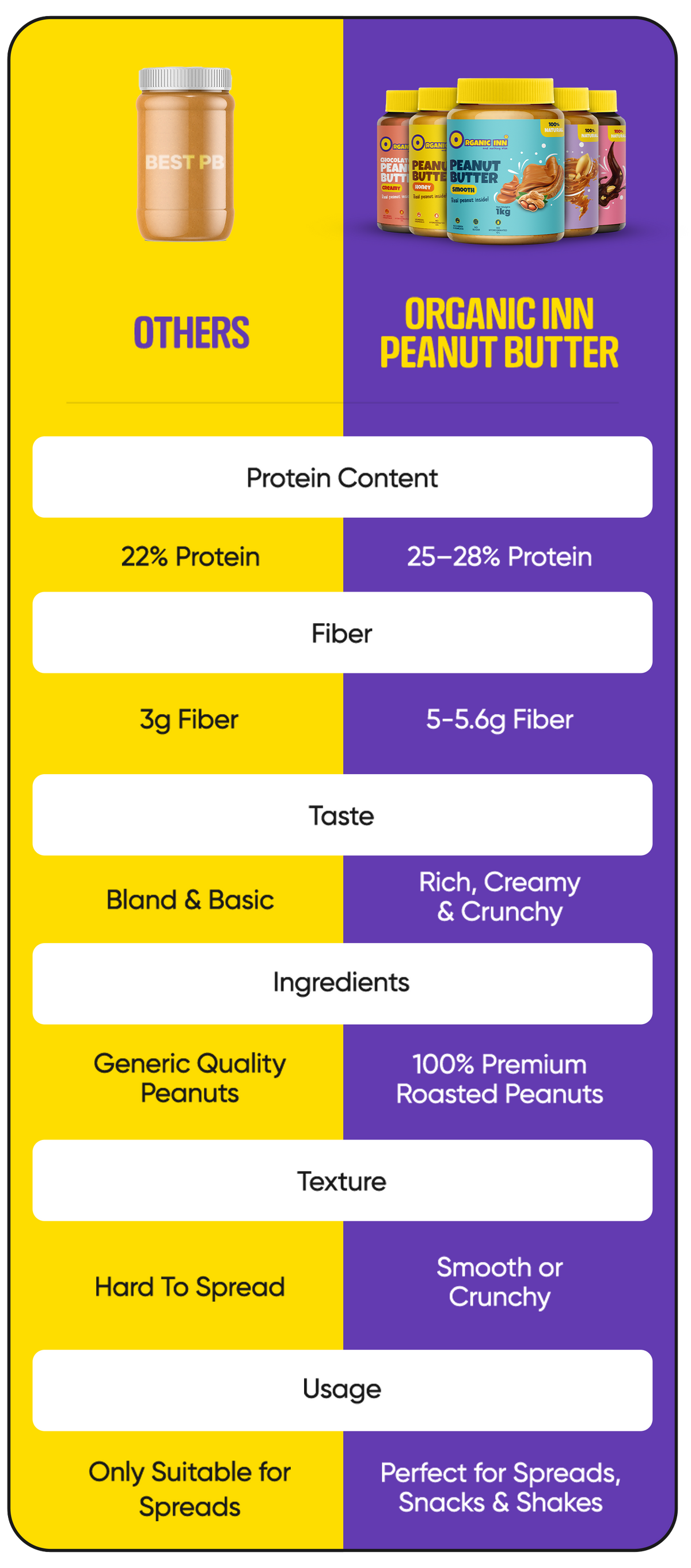 Organic Inn Peanut Butter is incredibly versatile! Enjoy it in smoothies, with fruits, spread on bread or pancakes, mixed in oats, or used in protein shakes. It’s your anytime source of energy. Perfect for breakfast, pre-workout fuel, or a late-night craving fix.